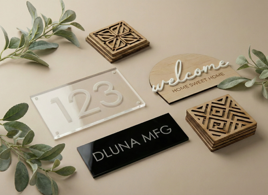 DLUNA Manufacturing creates custom laser engraved signs using premium hardwoods and cast acrylic. Serving property managers, businesses, and homeowners across the Austin metro area with precision craftsmanship and attention to detail.